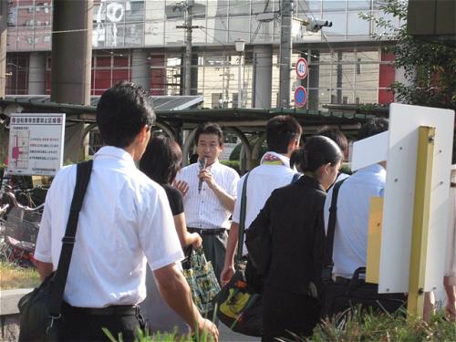 初当選前から続けている朝の街頭演説。やむを得ず松山を不在にする場合以外は、毎週月曜日7:40〜JR松山駅前で行っております。