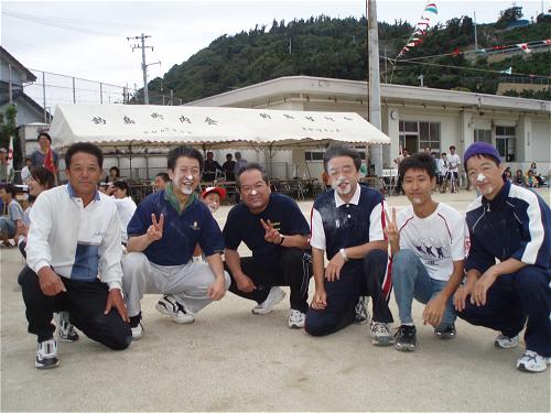 運動会は、松山市立由良小学校釣島分校(生徒数5人、先生3人!)で行われ、分校に着くや、釣島の皆様から温かく迎えて頂きました。運動会では、大人も子供も入り交えての競技に、楽しく参加しました。本当に、釣島の皆様の笑顔に元気付けられました。釣島の皆さん、ありがとう!