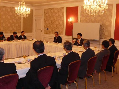 関西経済界を代表する方々で構成する定例勉強会の「金融・経済を議論する会」。官房長官時代は、東京を離れることができずに開催ができなかったが、今回久方振りに開催。わが国が人口減少時代を乗り切り、社会全体の活力を保っていくために、日本経済がどうあるべきか、意見交換を行う。