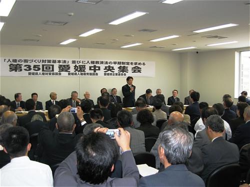 愛媛県人権対策協議会、県人権教育協議会、県企業連合会主催により開催された、「人権の街づくり対策基本法」並びに人権救済法の早期制定を求める第35回愛媛中央集会に出席。