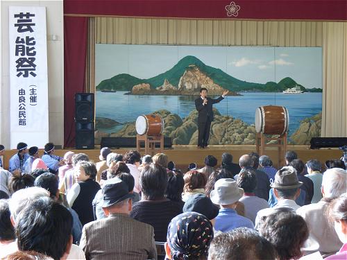 水軍太鼓で幕を開けた「第1回由良地区芸能祭」。カラオケや踊りなど芸達者な皆さんが集い、楽しいひと時を満喫致しました。