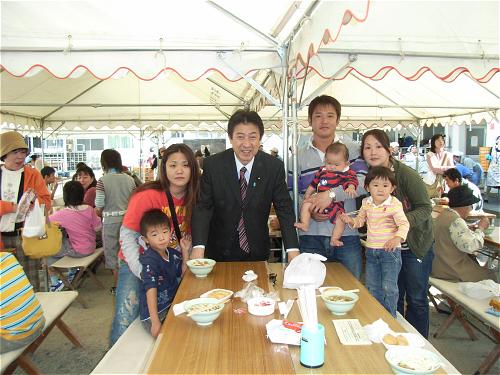 久米地区文化祭にお邪魔する。気持ちの良い秋晴れの下、子供からお年寄りまで幅広い年代の方が大勢賑わう中、参加者とともにうどんを頂く。