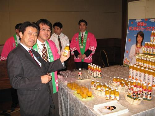 愛媛のブランド産品をもっと広めようと、えひめ愛フード推進機構が主催となり、東京のホテルで試食会が行われる。食材たちが調理の仕方ひとつで高級料理に変身。どれもおいしく頂きました。ポンジュース片手に写真撮影。