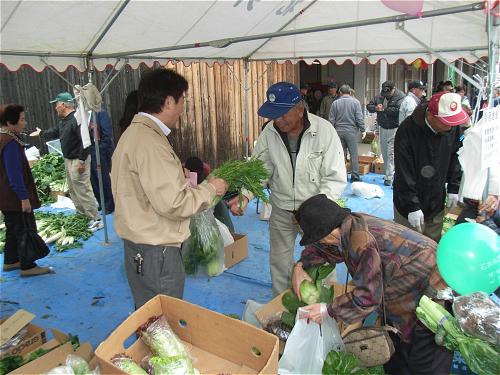 大盛況の中、第25回石井地区農業祭が開催されました。会場には、地域で収穫された存在感たっぷりの立派な野菜達が即売されていました。どの野菜にしようか。。。