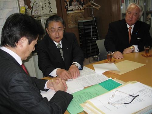 自民党愛媛県連幹事長 篠原実県議、愛媛県議会議長 横田弘之県議が来所。地方議員の議員活動をより円滑にするため、関係法案整備の要望をうける。