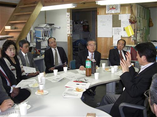 オフィス家具・OA機器・都市景観商品等の販売・補修を手掛けている会社にお伺いし、ミニ集会を行う。格差・税金問題などいろいろとご意見を頂戴する。皆さんの会社の繁栄が地方の活力になり、日本の再生に繋がる。