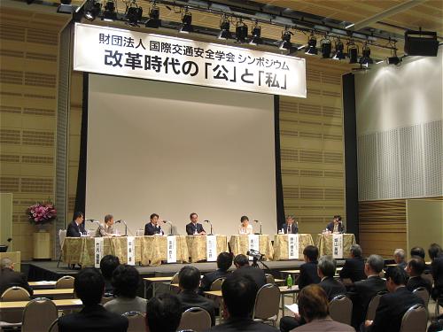 東京女子大 竹内健蔵教授、慶應大 中条潮教授のお二人がコーディネーター役となり、パネリストには東大・城山英明教授、ザ・アール 奥谷禮子社長、元衆議院議員前三重県知事・現早稲田大 北川正恭教授、慶應大 藤井彌太郎名誉教授が参加され、交通の枠を超えた幅広い観点から、どのような社会を構築していけばよいのか議論を行う。