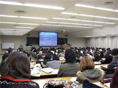 地球温暖化問題について200名の学生を前に、バリ島で行われていた「COP13,COP/MOP3」の最新情報を交えながら、日本はじめ世界各国が協力して安倍内閣から推し進めていた、取組むべき地球温暖化対策の現状と今後の展望について講演しました。みんなでかけがえのない地球を守ろう!