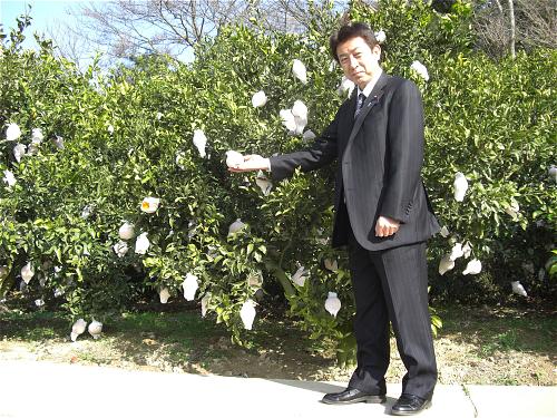 快晴の空の下、松山の山間を行く途中ふと、足が止まりデコポンの木々を覗いてみた。