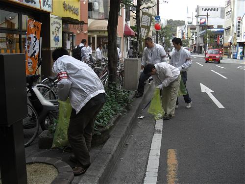 若手支援グループ「参騎会」の仲間と地元商店街のごみ拾いを行いました。