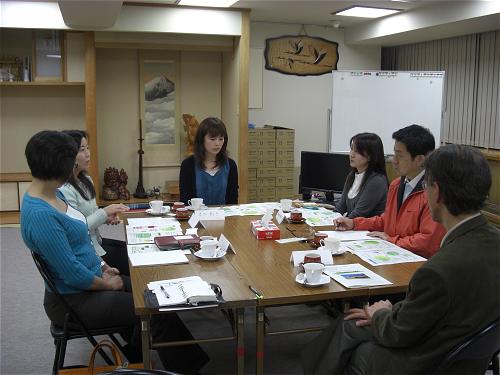昨年12月のオープン式典にも参加した精神障害者のための多機能型事業所・相談支援事業所「きらりの森」(松山市畑寺)で働くスタッフの皆さんと勉強会を行う。精神保健福祉士(PSW)が多い。