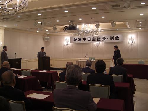 茶道裏千家 坐忘斎千宗室お家元をお迎えし、茶道の発展を願う経済人、文化人で構成する「愛媛今日会」の総会・例会・懇親会が開催される。