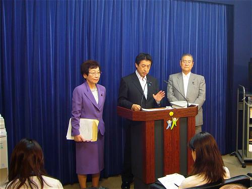 昨日の自民党地球温暖化対策推進本部、今朝の自民党政策審議会、総務会での審議の上了承された自民党地球温暖化対策推進本部の中間報告「最先端の低炭素社会構築に向けてーー来たるべき世代と地球のために」について野田毅委員長、川口順子事務局長とともに、国会内記者クラブにて副委員長として記者会見。