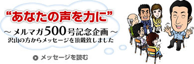 メルマガ500号を記念して、沢山の方からメッセージを頂戴致しました。